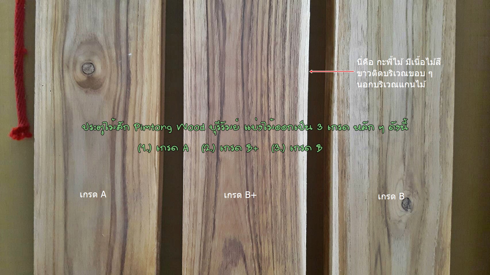 ทางร้านพิมพ์ทองค้าไม้ (Pimtong Wood) จะแบ่งไม้ออกเป็น 4 เกรด หลัก ๆ ดังนี้ครับ.