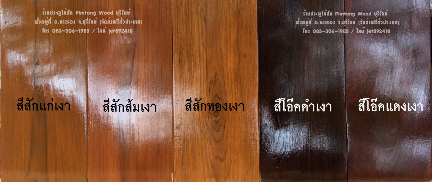 1. สีสักทอง 2. สีสักแก่ 3. สีโอ๊คแดง 4. สีโอ๊คดำ